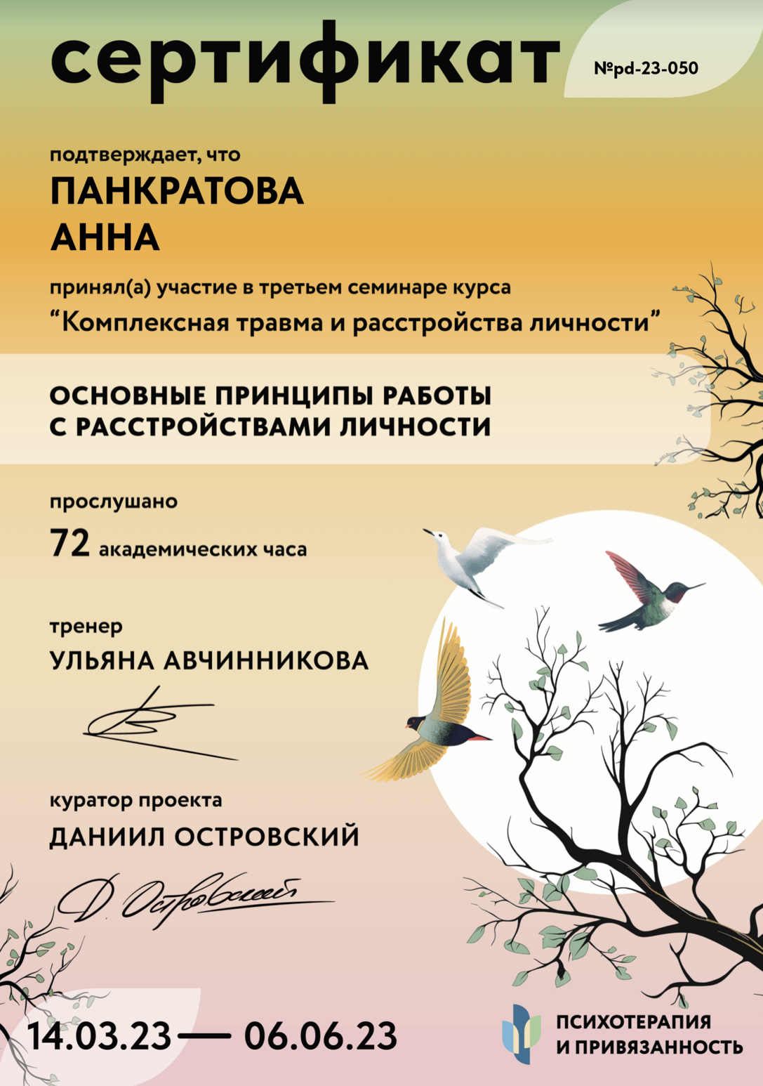 Имею сертификаты о прохождении различных интенсивов и мастер-классов (подробнее – см. сертификаты и дипломы)