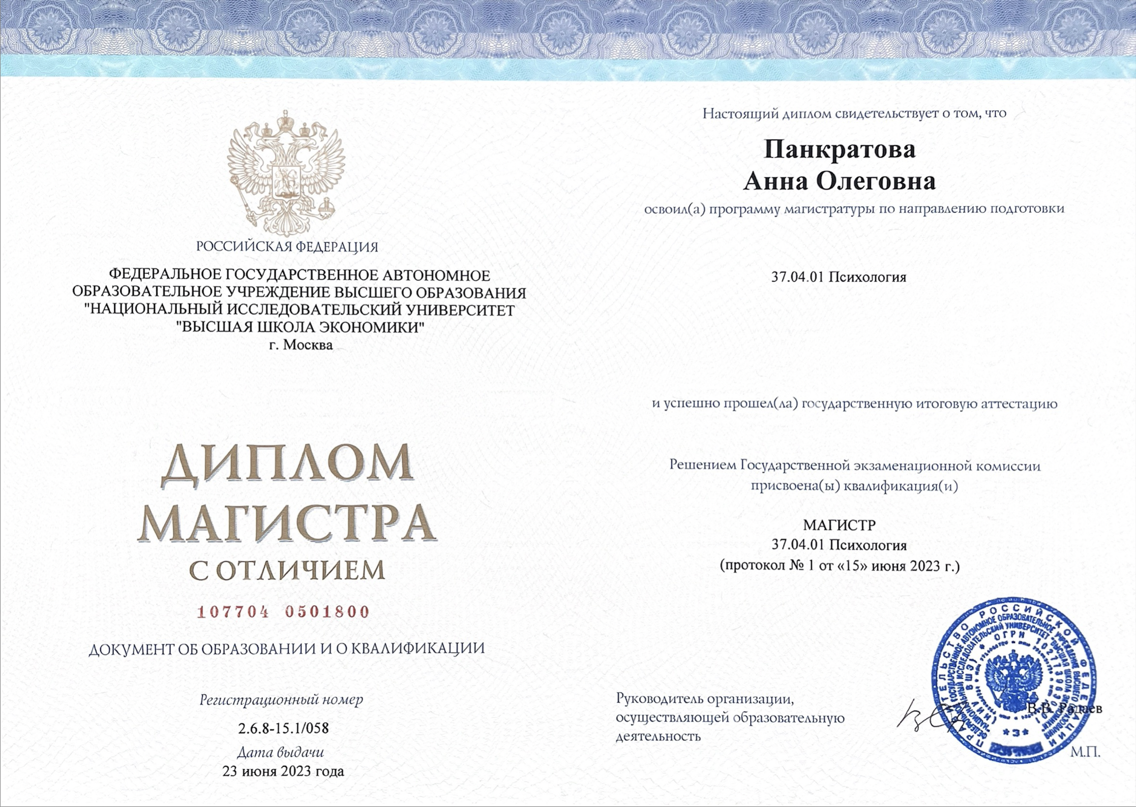Магистратура “Консультативная психология. Персонология” НИУ ВШЭ (клиенто-центрированный подход) (2021-2023)